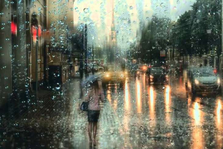 Пока шел дождь, коммунальщик поливал киевские улицы