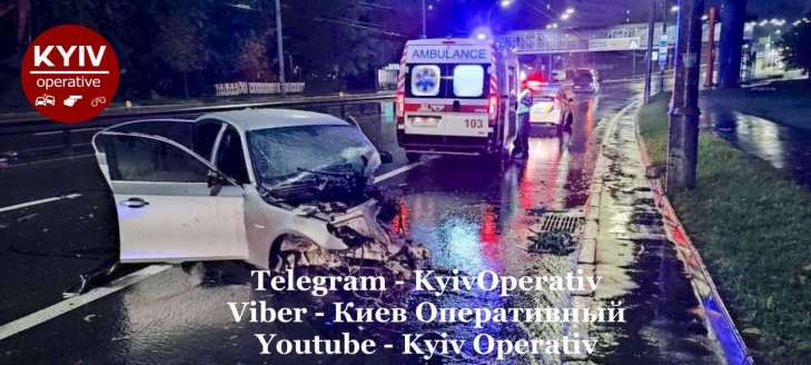ДТП в Киеве: водитель иномарки влетел в столб и убежал, пассажир в больнице