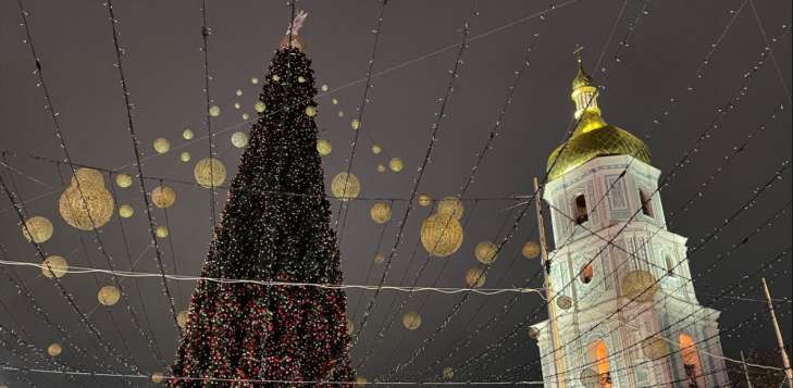 В Киеве на Софийской площади зажгли огни на главной елке страны.