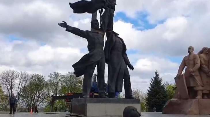 Вчора, 26 квітня, у Києві під час демонтажу монумента трудящих під Аркою "Дружби народів" у російського робітника відвалилася голова.