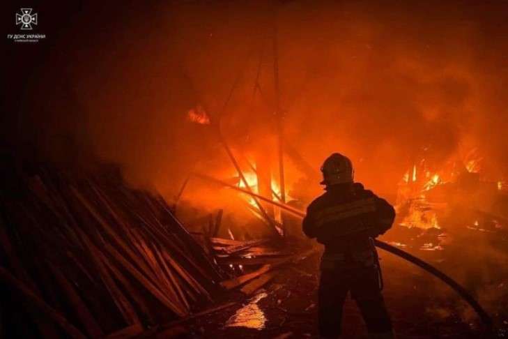 Також вогнеборці показали кадри гасіння нічної сильної пожежі на складах в Українці.