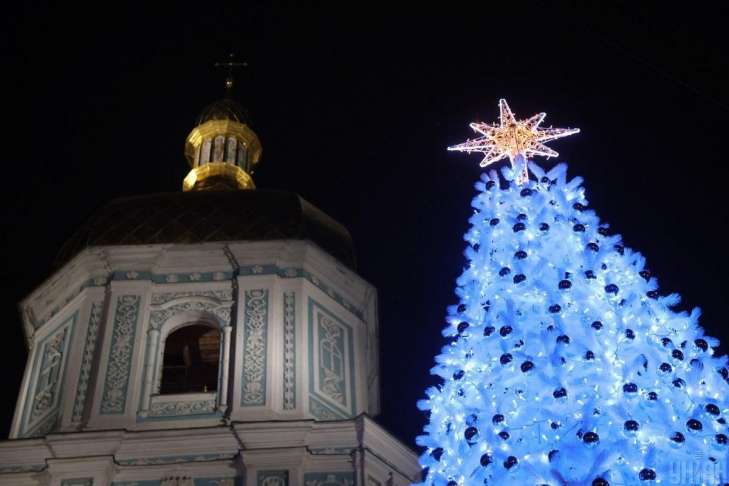 В прошлом году главная елка также была установлена на средства меценатов – белая, искусственная, высотой 15 метров. Ее украсили светло-голубой гирляндой протяженностью 2 километра и двумя тысячами бирюзовых игрушек. Тогда мэр столицы Виталий Кличко отмечал, что дизайн елки гармонирует с фасадом Софии Киевской.