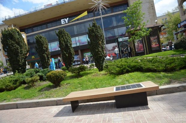 На центральной улице Киева появилась лавка, от которой можно зарядить телефон (ФОТО)