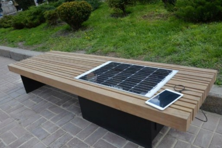 Солнечная панель, вмонтированная в одну из частей скамейки, позволяет через USB-порт зарядить телефон или любое другое устройство.
