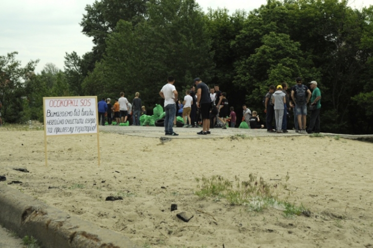 Киевляне, живущие на массиве Осокорки, в субботу устроили акцию протеста против уничтожения еще одного озера на левом берегу столицы.