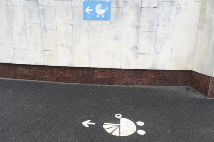 На территории, где можно оставить указанное передвижное средство, висит табличка на стене с изображением коляски, которое дублируется и на тротуаре.