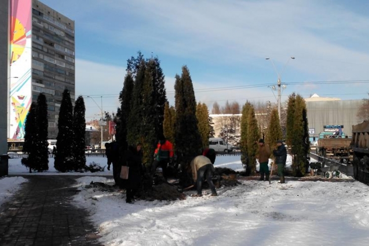 Высадку крупномерных саженцев с комом земли зеленстроевцы производят по правилам: до -10 С -12 С.