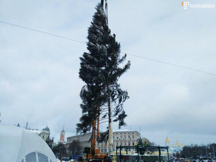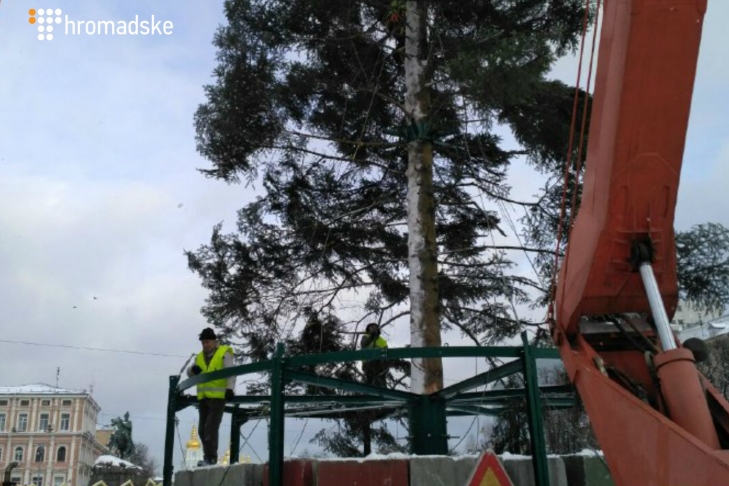 иевская городская администрация начала установку новогодней елки в центре столицы, сообщают 112.