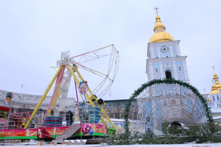 В частности, на Михайловской площади уже начали монтировать 16-метровое колесо обозрения, которое доставили в Киев из Франции. Кабинки колеса будут открытыми.