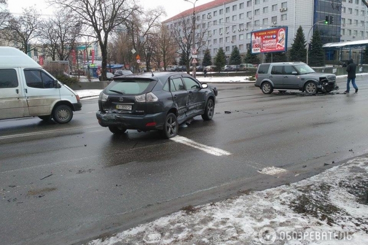 ДТП произошло во вторник, 20 декабря, около 13:00 на перекрестке улицы Героев Обороны и Голосеевского проспекта. Значительные повреждения получили автомобили Range Rover, Lexus и бус Volkswagen. О пострадавших не сообщается.