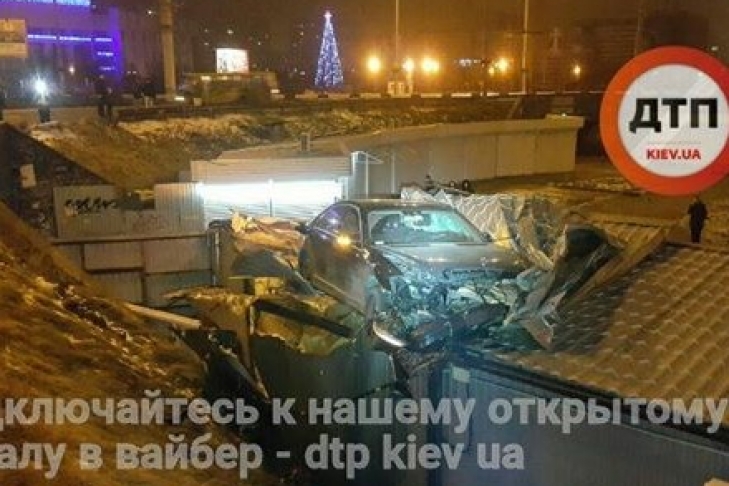 Как сообщается, в Киеве на Троещине, "Мерседес" вылетел с дороги, пролетел около 25 метров и приземлился на маф.