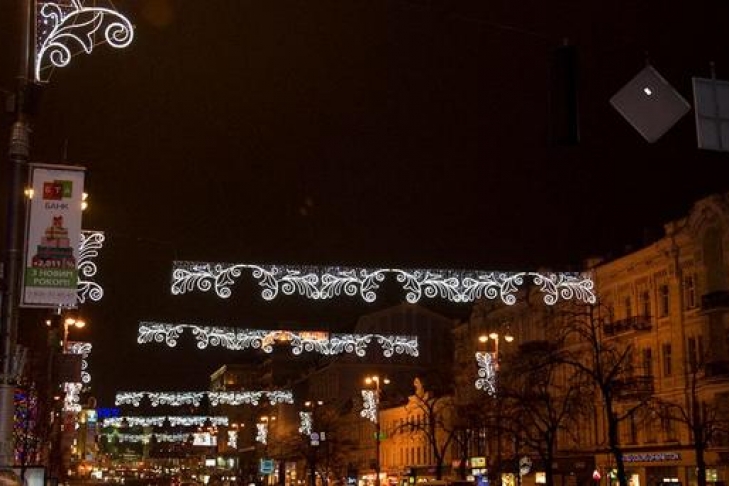 Светящимися гирляндами украсили деревья на Софийской площади, Майдане и Крещатике, а над проезжей частью по центральной улице повесили иллюминацию с зимними мотивами (более 200 единиц).