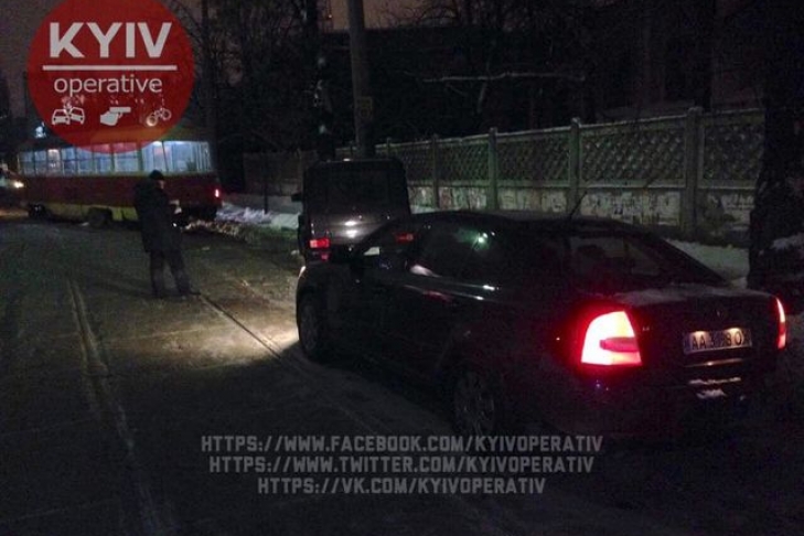 В Киеве трамвай столкнул в столб внедорожник