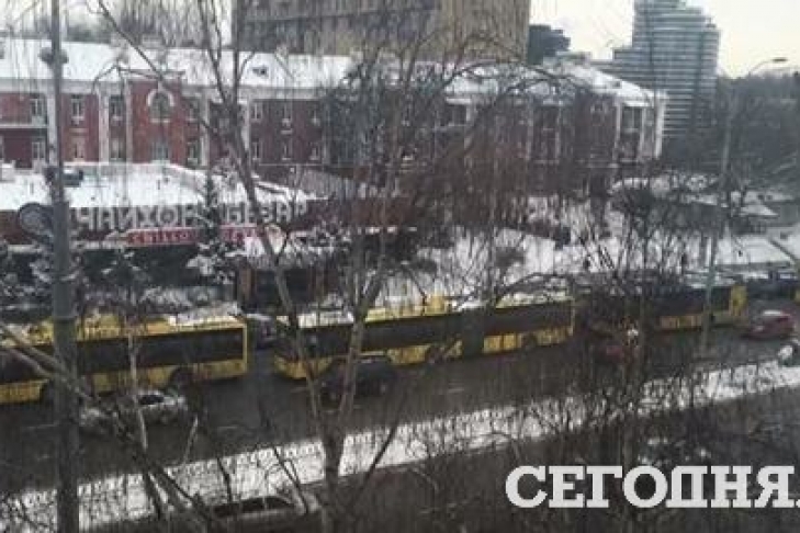Пассажирам пришлось толкать троллейбус в Киеве