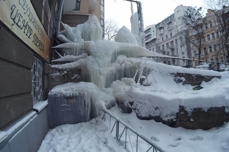 Киевлян шокировала огромная сосулька в центре столицы