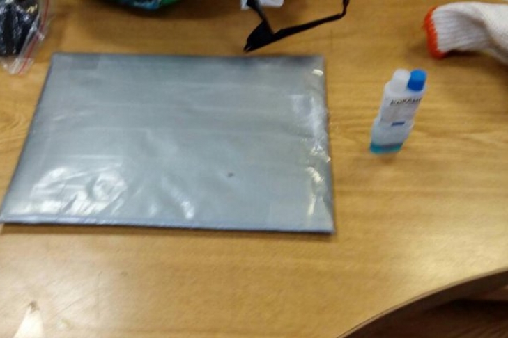 Данное EMS-отправление было обернуто в полиэтиленовую пленку и обмотано капроновой нитью с металлической пломбой.