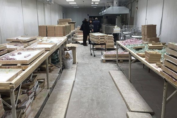Отмечается, что фактически в промышленном ангаре, помещении-складе с автомобильной резиной и бытовой химией, с нарушением всех санитарных и эпидемиологических норм, без каких-либо разрешительных документов на начало работ и документов, удостоверяющих качество и безопасность продукции, нелегальные работники изготавливали восточные сладости, рахат-лукум, конфеты и тому подобное.