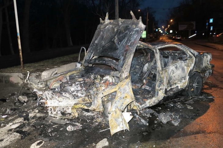 Водитель Mercedes на высокой скорости зацепил мусоровоз и вылетел в бордюр. После столкновения произошел взрыв в моторном отсеке автомобиля, в результате чего машину охватило пламя. Рискуя жизнью, водитель и пассажиры мусоровоза успели спасти парня и девушку из салона.