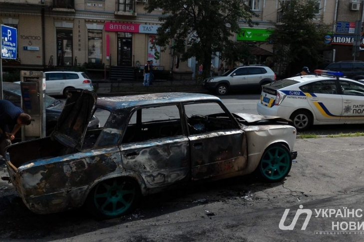 В среду, 12 июля, в центре Киева на площади Льва Толстого сгорел припаркованный на тротуаре автомобиль марки ВАЗ. Об этом сообщают "Українські Новини".