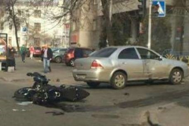 В центре Киева мотоцикл столкнулся с иномаркой