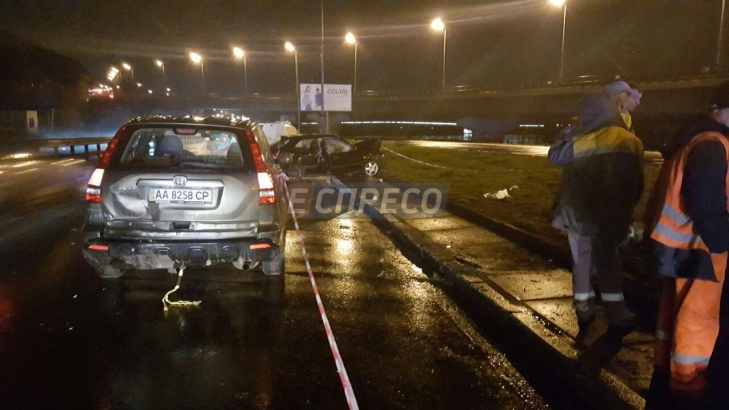 В Киеве, на набережной возле станции метро "Днепр" "Хонда" сбила электроопору, пишет "112".