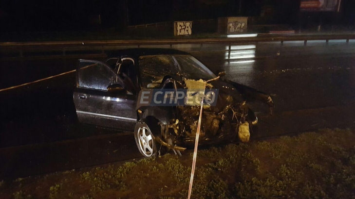 Вечернее ДТП в Киеве: Легковушка снесла электроопору, есть пострадавшие