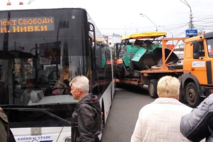 Оказалось, что тягач "Автодора" зацепил троллейбус, направлявшийся по маршруту 26.
