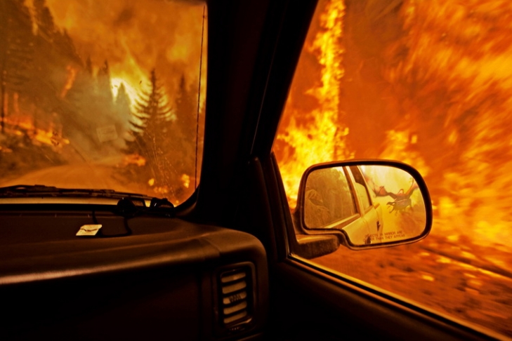 Еще несколько человек пытались отодвинуть близстоящую машину, чтоб она не пострадали в случае чего.