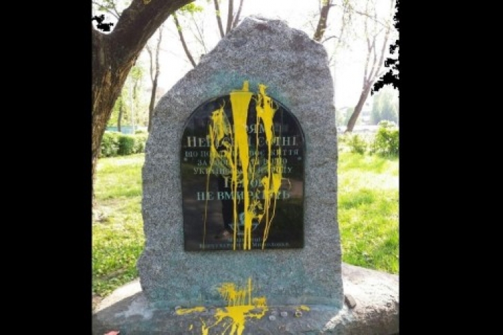 Вандалы осквернили памятник Героям Небесной сотни в Киеве
