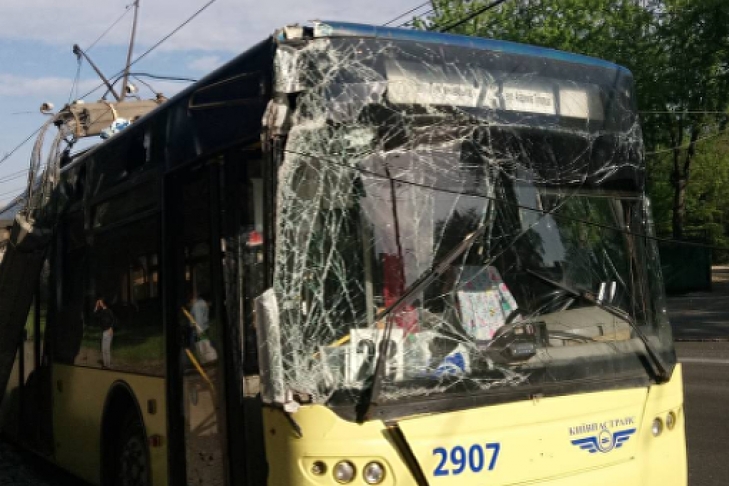 ДТП в Киеве: троллейбус с пассажирами врезался в столб