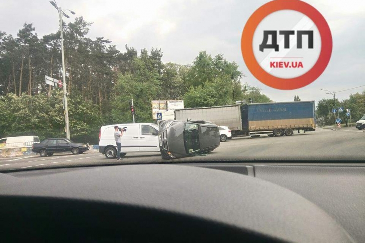 В Киеве произошла жуткая авария с опрокидыванием двух авто