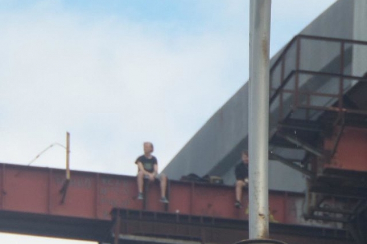 В Киеве по недостроенному Подольскому мосту регулярно гуляют подростки.