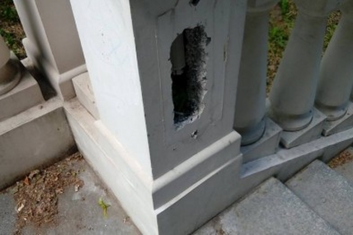 В Киеве из лестницы у памятника Магдебургскому праву неизвестные выломали Герб Украины.