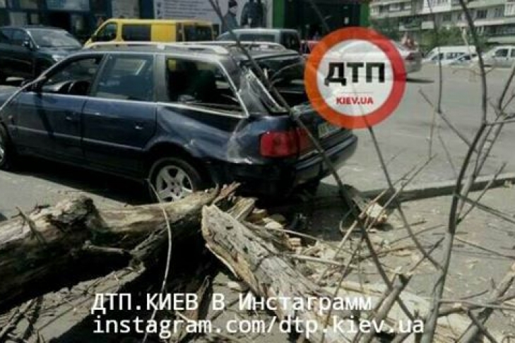"Киев. На Ауди упало дерево. Пострадал ребенок!" - говорится в сообщении.