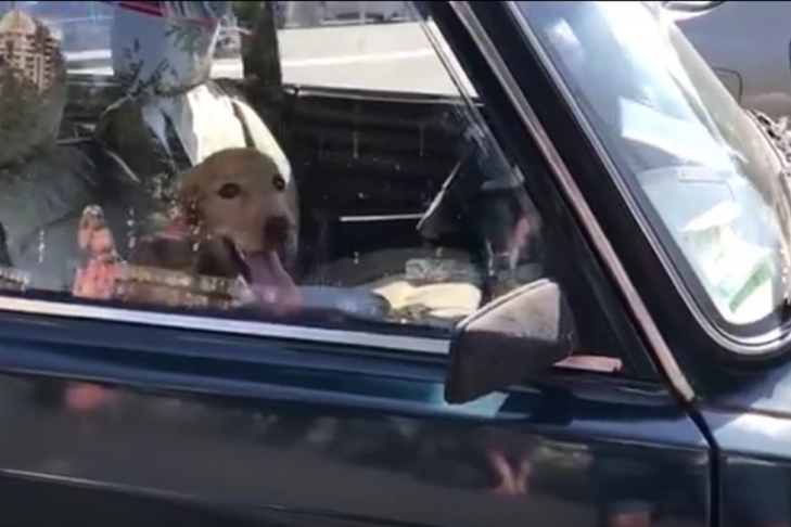 Как сообщают очевидцы событий, из-за высокой температуры воздуха внутри запертой машины беспомощное животное отчаянно дышало.