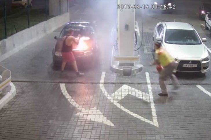 В Киеве сотрудник автомобильной заправки проявил мужество и спас автомобиль от возгорания. Соответствующее видео было опубликовано на YouTube.