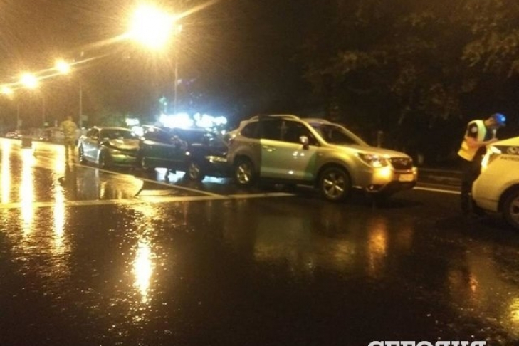 В Киеве три иномарки столкнулись перед светофором