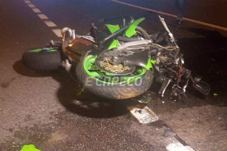 Мужчина, который был за рулем байка, слетел с него, и машина еще несколько метров протащила его по дороге, после чего вылетела в кювет.