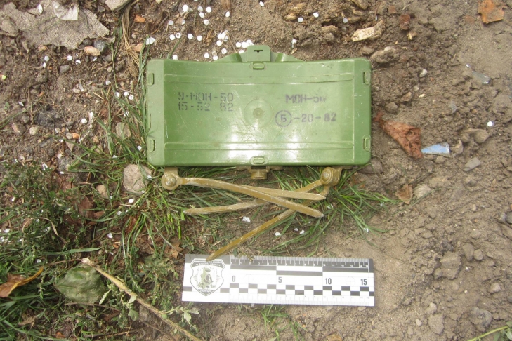 На месте специалисты-взрывотехники изъяли учебную противопехотную мину "МОН-50". Это осколочная мина направленного поражения. В качестве поражающих элементов могут использоваться цилиндрические осколки или шарики.