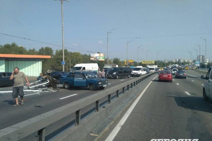Сегодня, 11 сентября, в Киеве на Московском мосту произошло ДТП. Об этом сообщает "Сегодня".