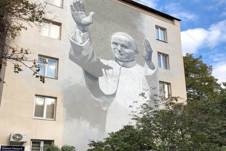 В Печерском районе Киева открыли мурал 264-му Папе Римскому Иоанну Павлу II, сообщает 112.