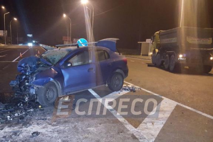 ДТП в Киеве: такси влетело в грузовик, есть пострадавшие