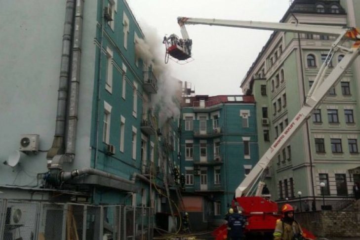 В центре Киеве горит ресторан, расположенный на ул. Жилянской, 37.