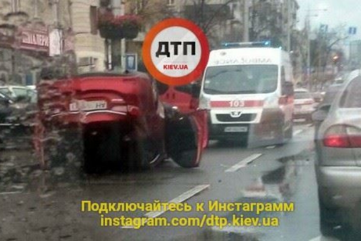 В центре Киева перевернулся автомобиль