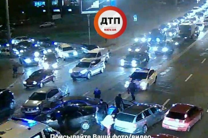 В Киеве, возле Воздухофлотского путепровода на улице В. Черновола произошло масштабное ДТП при участии пяти автомобилей, сообщает Dtp.kiev.