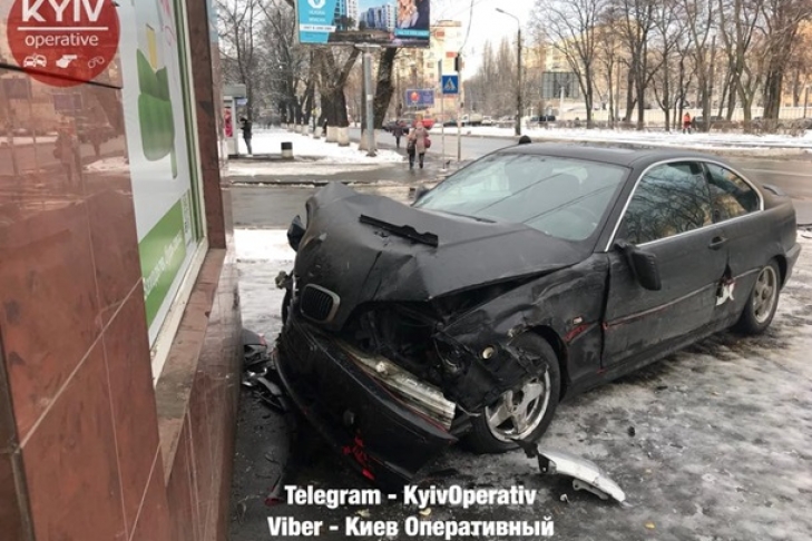 В понедельник, 11 декабря, в Киеве на улице Кирилловской автомобиль BMW въехал в стену "Приватбанка" после столкновения с ZAZ. Об этом сообщает "Киев Оперативный".
