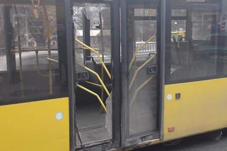 В Киеве сегодня утром, 31 января, пассажиры повредили дверь троллейбуса, разбив стекло.