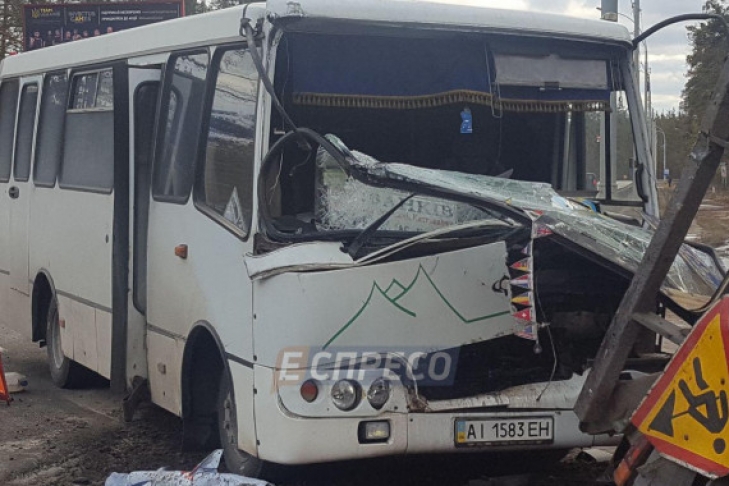 Под Киевом маршрутка врезалась в автокран, есть пострадавшие