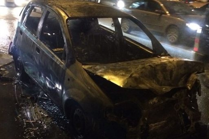 В результате пожара автомобиль сгорел полностью.