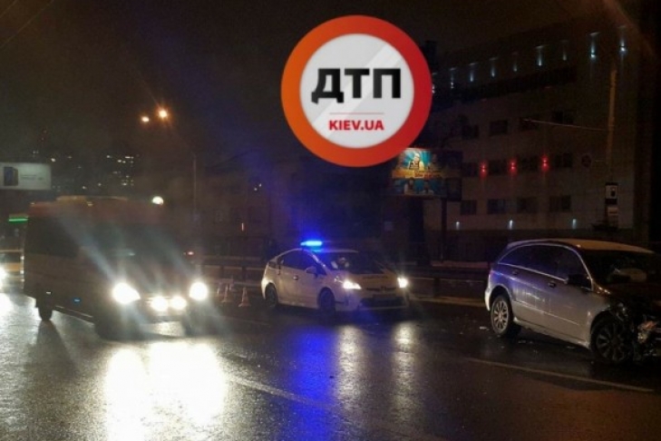 ДТП в Киеве: на проспекте Победы Mercedes влетел в отбойник